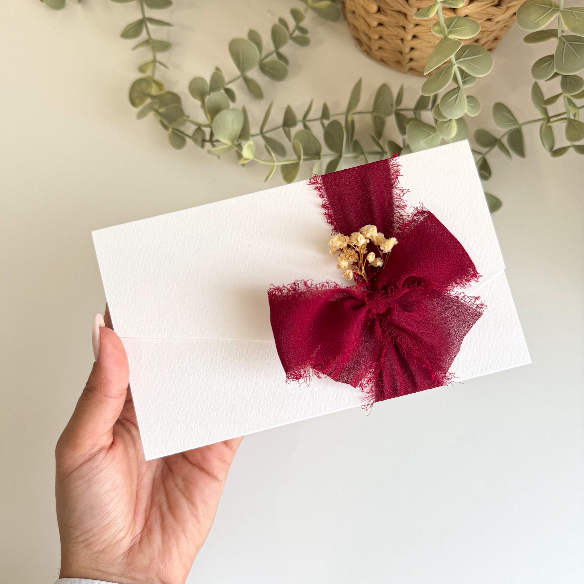Elaborado com papel texturado de qualidade. Laço e flores secas incluídos no valor!