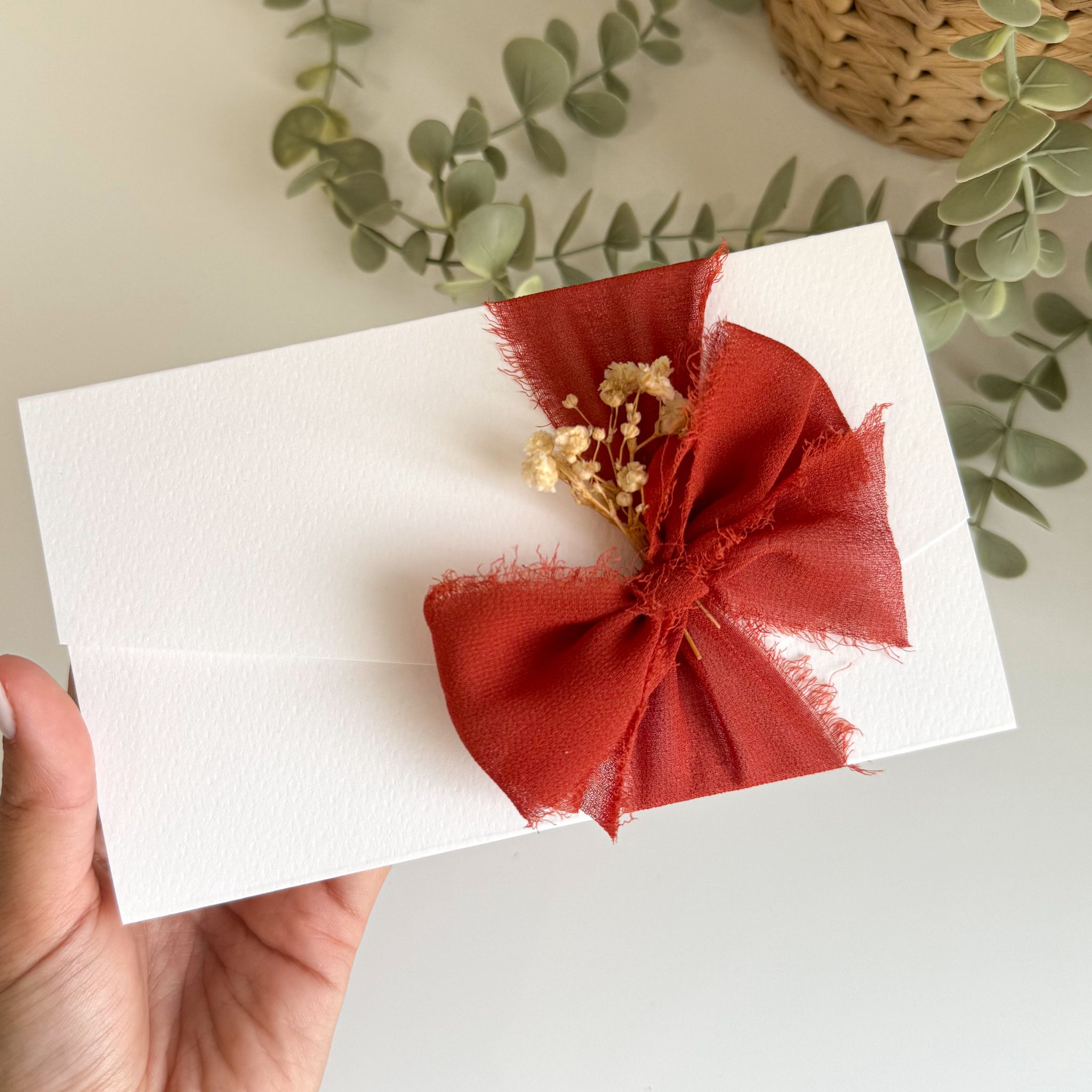 Elaborado com papel texturado de qualidade. Laço e flores secas incluídos no valor!