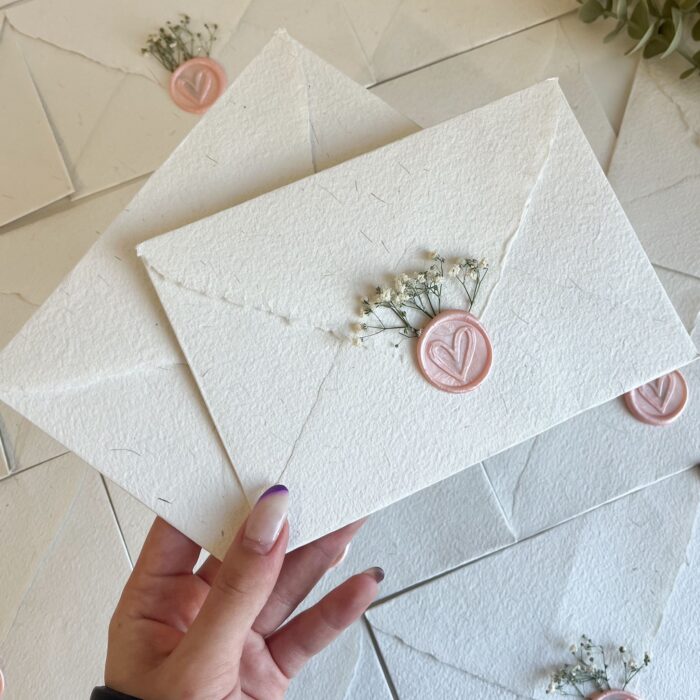 Elaborado com papel texturado de qualidade e envelope artesanal. Lacre e flores secas incluídos no valor!