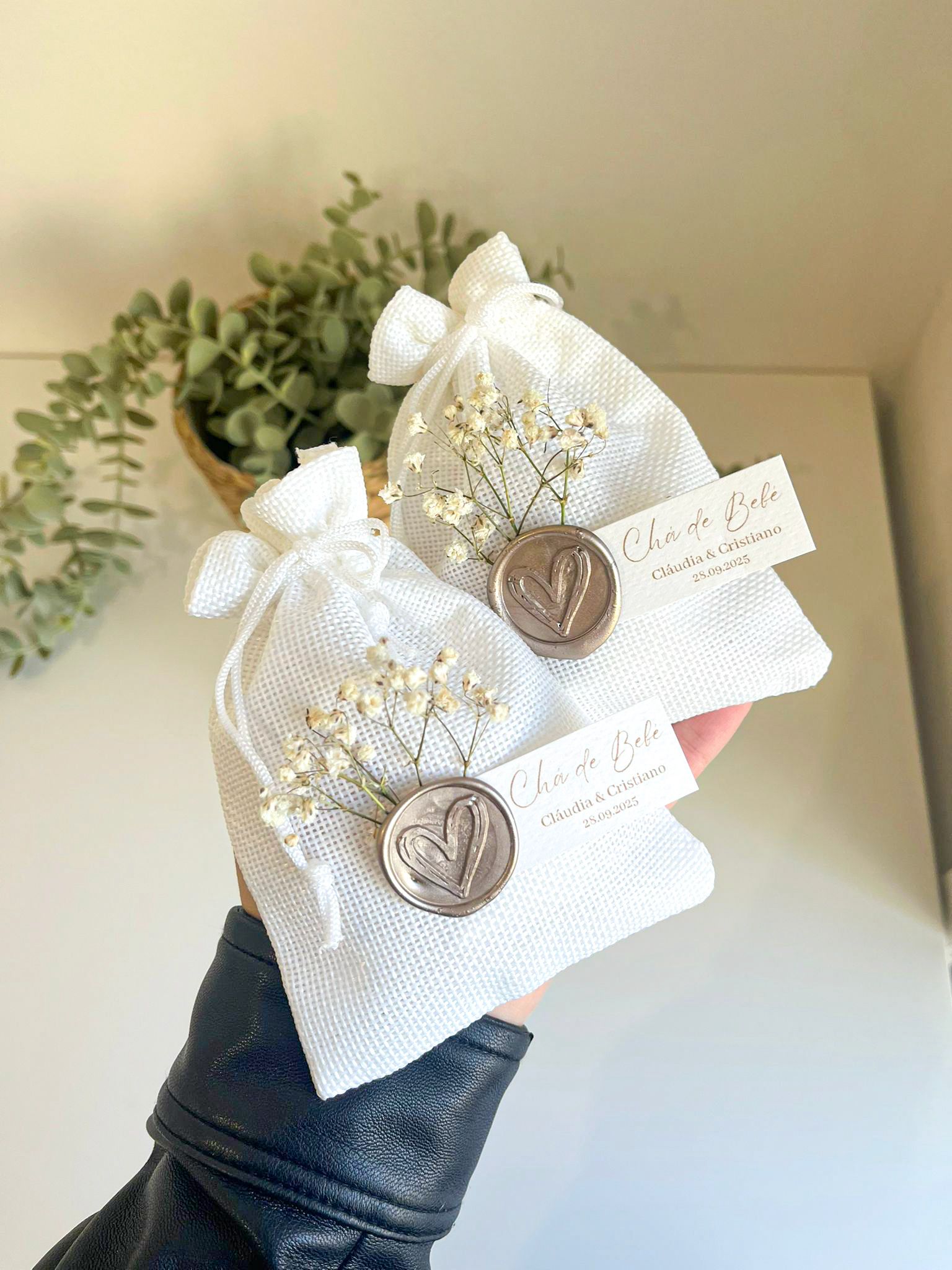 Personalizamos ao seu gosto, etiqueta personalizada e saco de pano incluídos no valor.